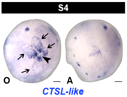 | blue arrowheads | eye progenitors (trail cells) |